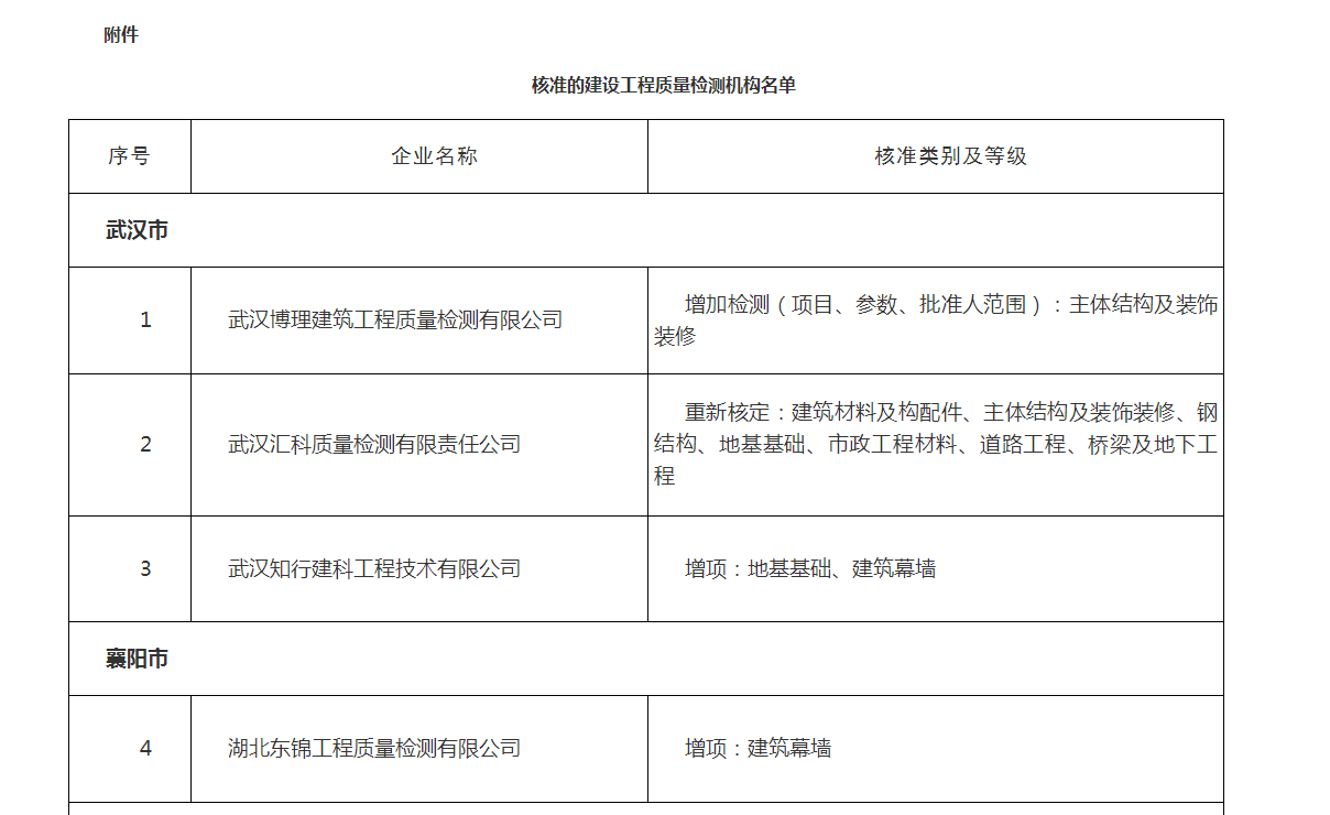 閱讀次數(shù):133 發(fā)布時間:2025年12月11日2025年12月9日,湖北省住房和城鄉(xiāng)建設(shè)廳公告核準(zhǔn)建設(shè)工程質(zhì)量檢測機構(gòu)名單,我司建筑幕墻檢測資質(zhì)順利通過。
