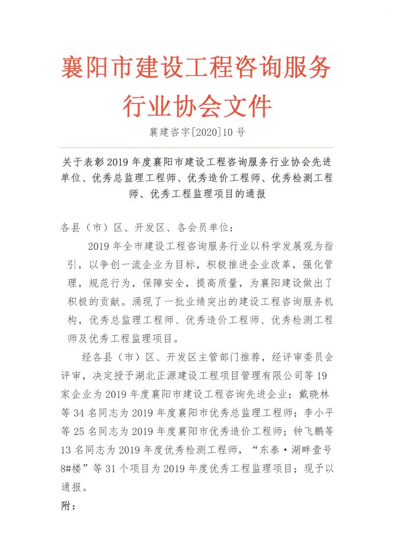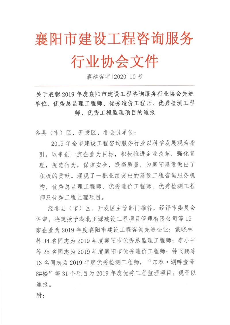 東錦檢測公司被襄陽市建設(shè)工程咨詢服務(wù)行業(yè)協(xié)會評為先進單位