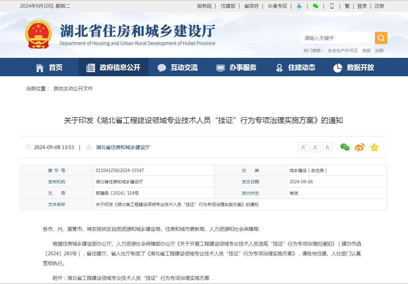 關(guān)于印發(fā)《湖北省工程建設(shè)領(lǐng)域?qū)I(yè)技術(shù)人員“掛證”行為專項治理實施方案》的通知