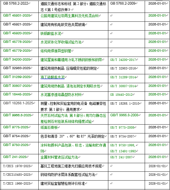 2026年1月1日開始實施的工程建設(shè)規(guī)范標(biāo)準(zhǔn)